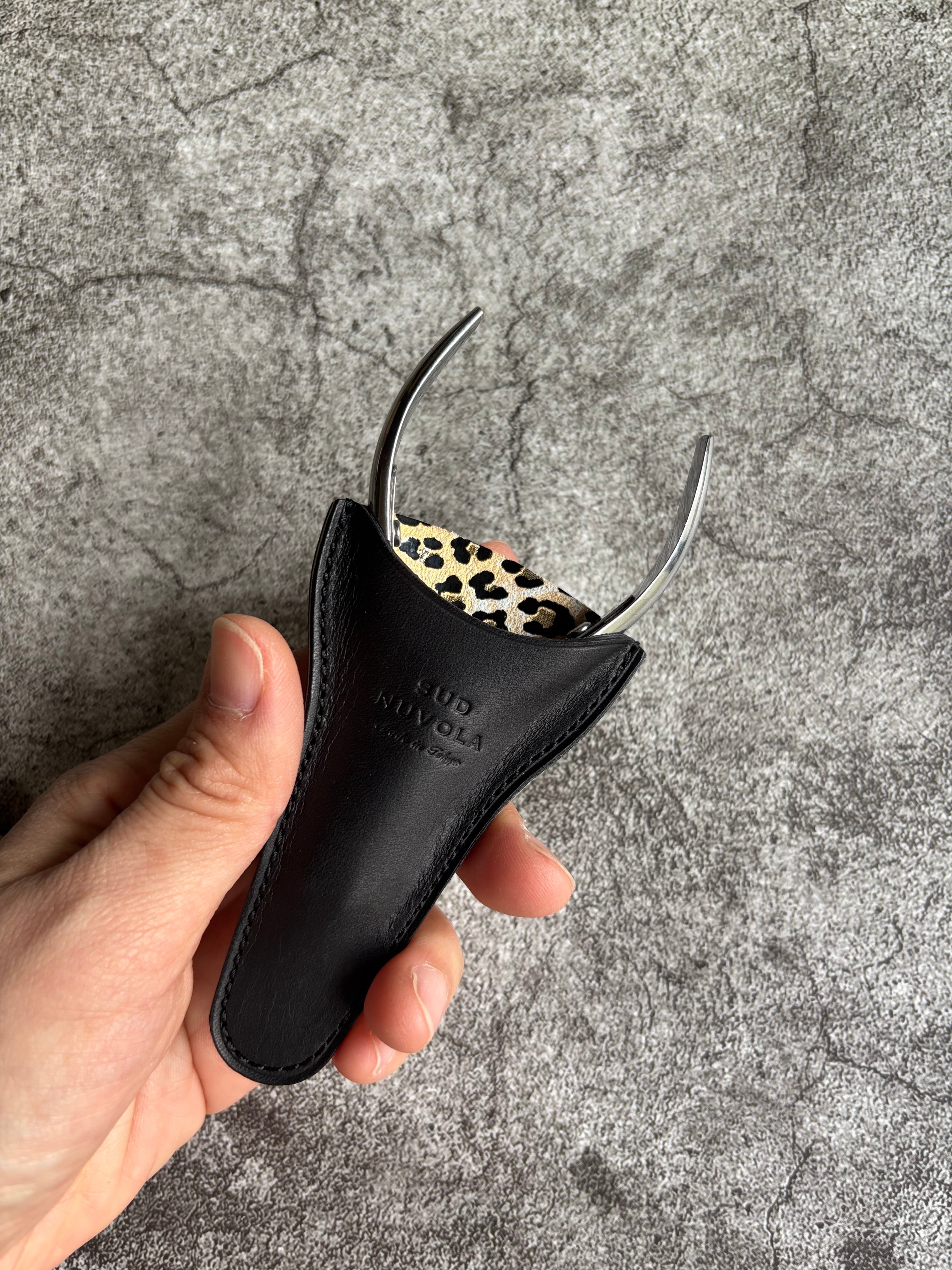 leather nipper case -black reopard-